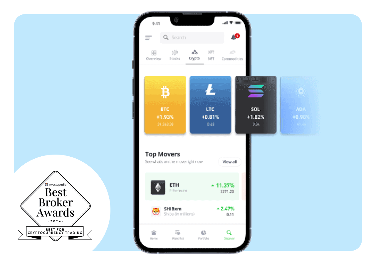 Trade 100+ cryptoassets on a trusted global multi-asset broker, with powerful tools, user-friendly features, and industry-leading security protocols—all with transparent, fixed fees.