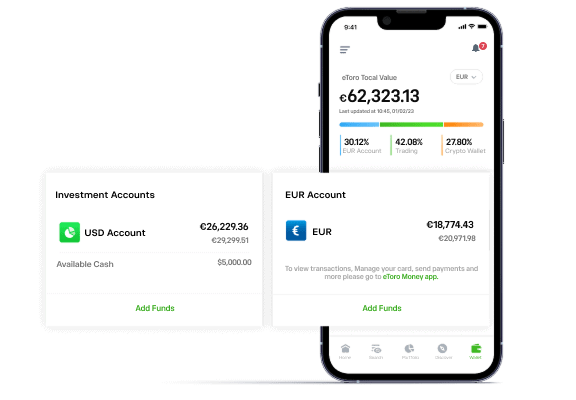 On eToro, you’ll have access to leading local and global assets — plus insights from analysts and investors in your area, as well as from around the world. When you open a Local Currency Account, you add the flexibility to deposit, hold, and fund trades in your local currency or USD — whichever suits you at any moment.